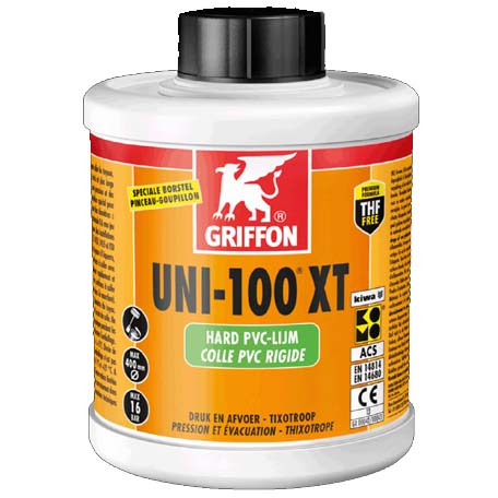 Pour coller les tuyaux, les manchons et les raccords à ajustage serré et plus large (garnit les joints) dans des installations sous pression et des installatons d'évacuation. Convient pour des diamètres ≤ 400 mm. Max. 16 bar (PN 16). Tolérance maximale 0,6 mm jeu / 0,2 mm serrage. Convient entre autres pour des installations de conduites conformément à EN1329, 1452, 1453, 1455 et ISO 15493 (PVC).