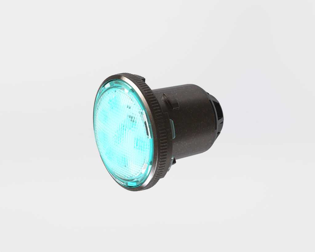 Le projecteur LED pour piscine Micro Plug-in-Pool permet un éclairage jusqu'à 1300 lumen en blanc, ou 800 lumen en cyan. En choisissant des projecteurs monochromes aux couleurs différenciées, vous optez pour un éclairage très puissant autre que le blanc.